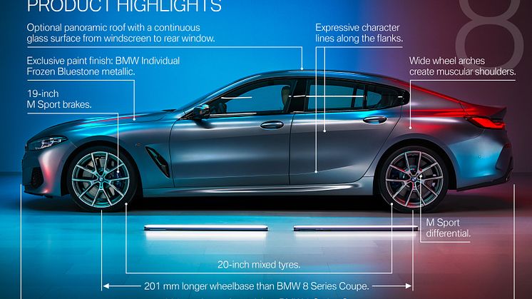 Modeloffensiven fortsætter hos BMW, og nu afsløres de første billeder af den helt nye BMW 8-serie Gran Coupé, som er en firedørs luksussportsvogn. Den nye model er udviklet sideløbende med BMW 8-serie Coupé og Cabriolet samt sportsvognen BMW M8 GTE. Bilen lanceres i Danmark til september.