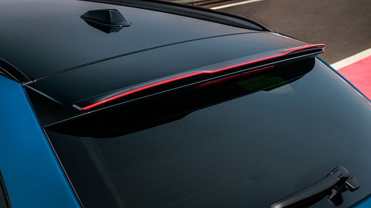 BMW M3 CS Touring kan bestilles i British Racing Green, Laguna Seca Blue, Frozen Solid White eller Sapphire Black metallak. Taget og den modelspecifikke tagspoiler er lakeret i sort højglans, som giver et elegant præg til det dristige eksteriør. En anden eksklusiv designdetalje er den røde kant rundt om tagspoileren.