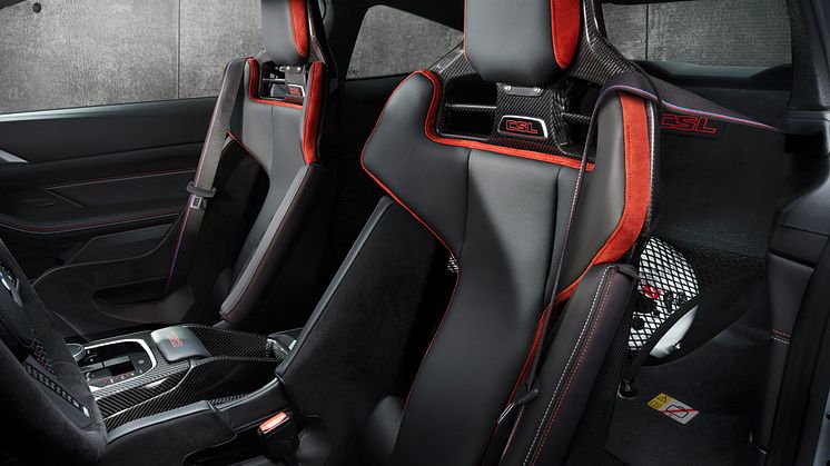 M Alcantara-rattet, kabinelister i antracit, kulfiberdetaljer i kabinen, ”CSL”-logo samt M sikkerhedsseler er alt sammen med til at understrege de sportslige gener. I bagagerummet er der opbevaringsplads til to hjelme.