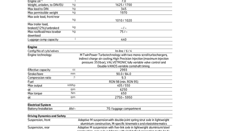 Som standard har bilen M Drive Professional, som inkluderer M Drift Analyzer og M Laptimer plus M Mode-knappen til aktivering af ROAD-, SPORT- og TRACK-indstillingerne.