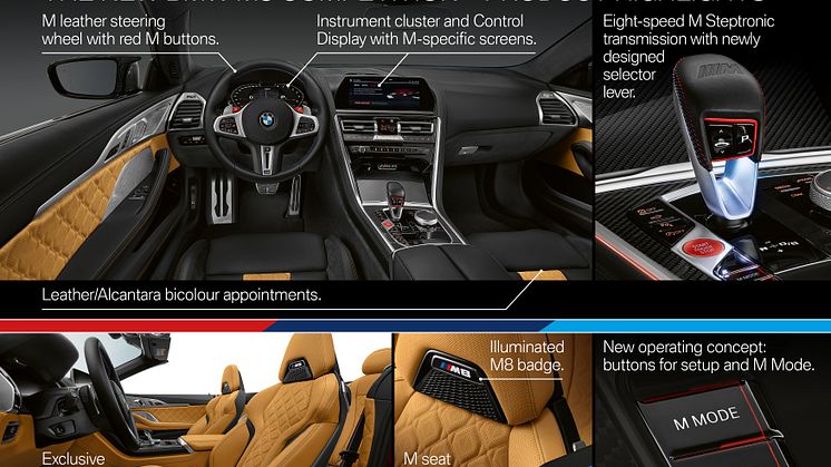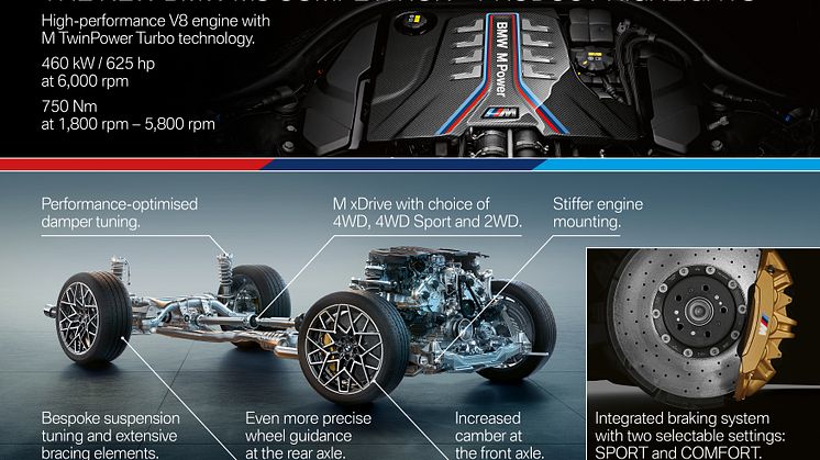 Ligeledes kan de nye "M Modes" - som er udviklet specielt til M8 - indstilles til henholdsvis ROAD, SPORT og på Competition-udgaverne også TRACK. Bilen kan altså sættes op, så den præcist rammer underlag og temperament.