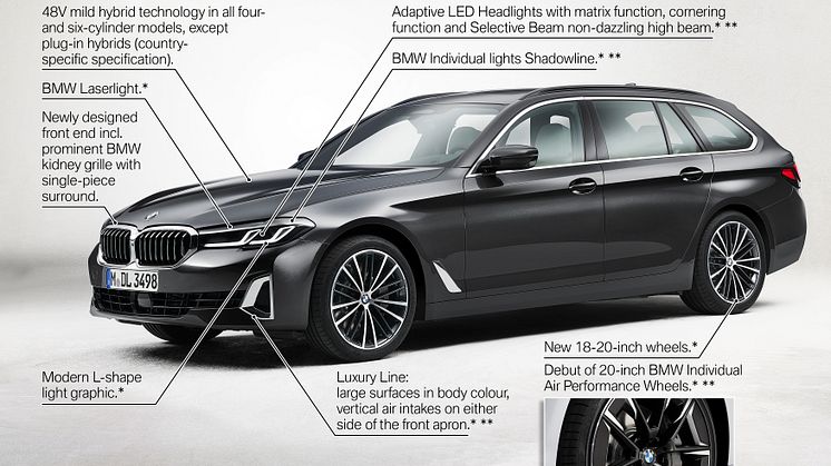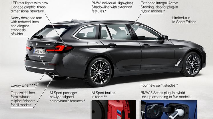 Til november får de to plug-in-hybrider BMW 530e Sedan og BMW 530e xDrive Sedan følge af yderligere tre nye udgaver: BMW 545e xDrive Sedan, BMW 530e Touring og BMW 530e xDrive Touring.