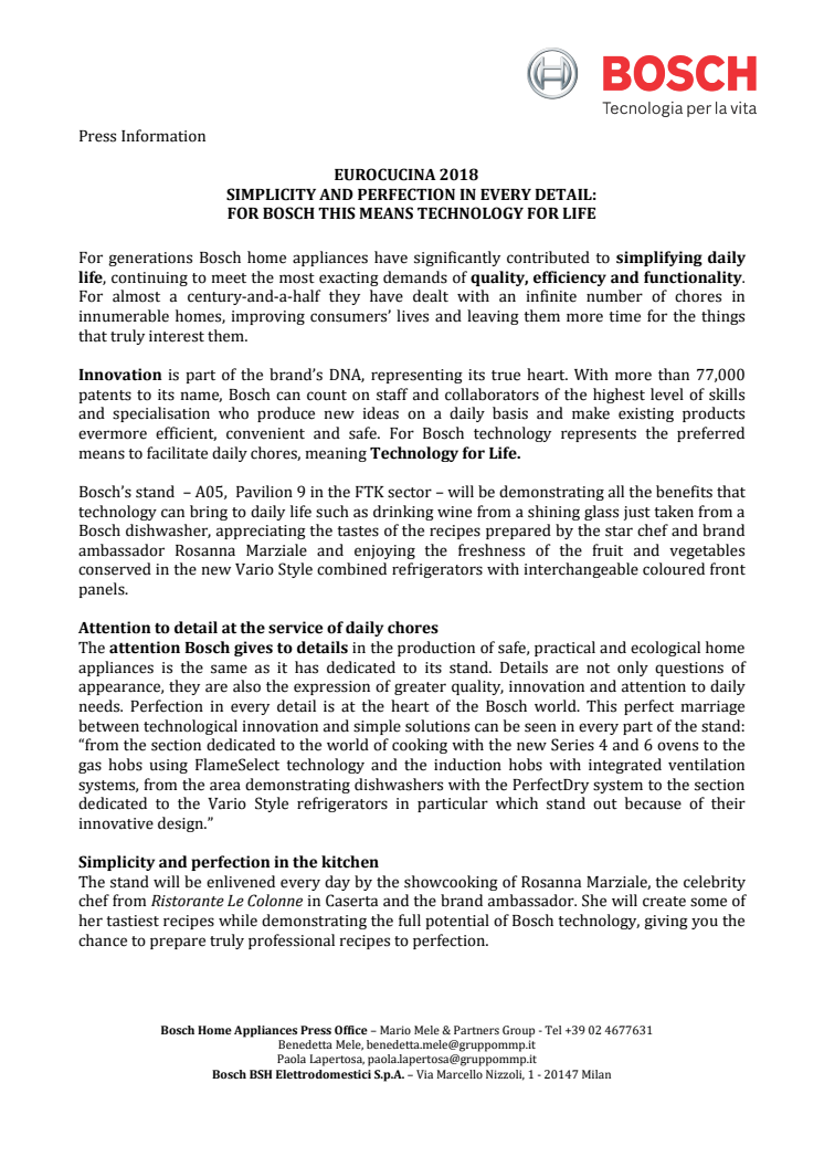 Få et indblik i de seneste innvovationer fra Bosch hvidevarer, når du besøger årets EuroCucina i Milano.