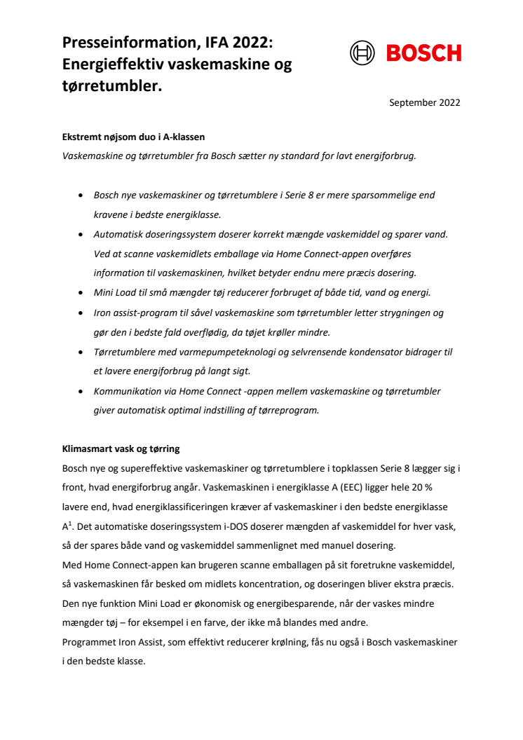 Presseinformation, IFA 2022- Energieffektiv vaskemaskine og tørretumbler_DK.pdf