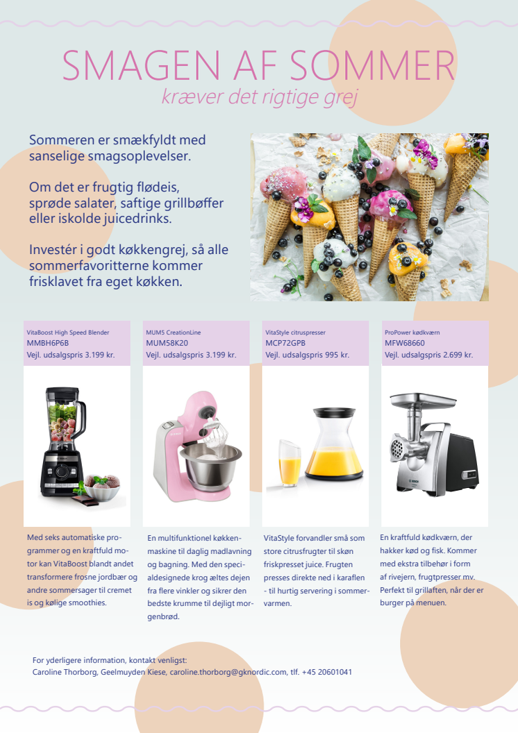 Sommeren er smækfyldt med sanselige smagsoplevelser. Om det er frugtig flødeis, sprøde salater, saftige grillbøffer eller iskolde juicedrinks. Investér i godt køkkengrej, så alle sommerfavoritterne kommer frisklavet fra eget køkken.