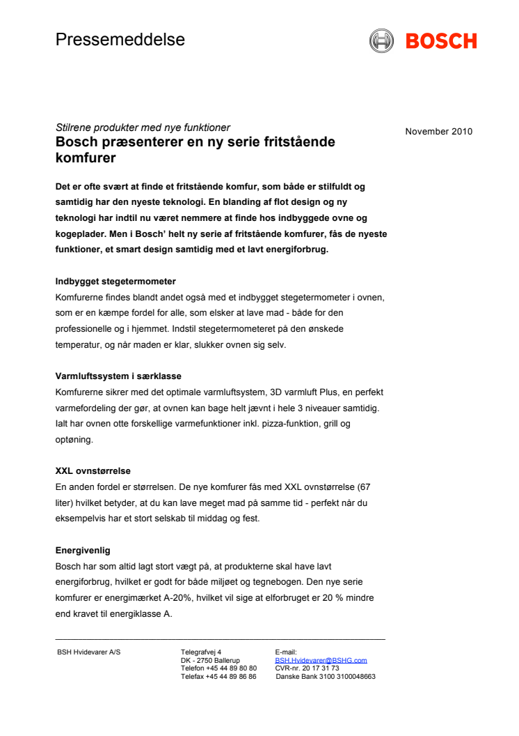 Se mere information om Bosch fritstående komfurer på www.boschhome.dk/komfurer