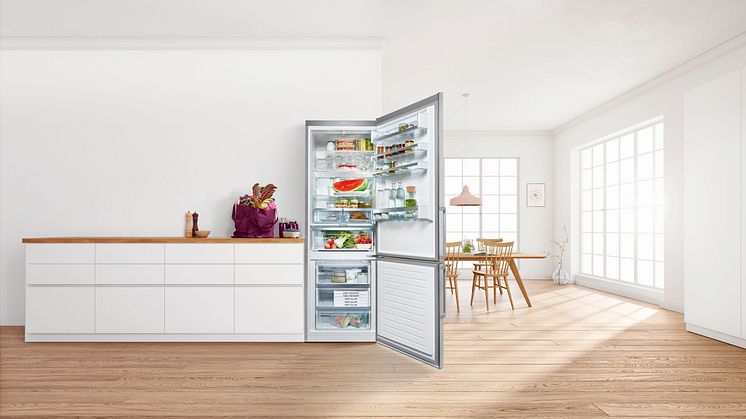 Ifølge intern forskning hos BSH, som ejes af Bosch-koncernen og er producenten bag Bosch hvidevarer, har mange husstande konkluderet, at deres køleskabet ikke er rummeligt nok, og at de ønsker betydelig mere plads til opbevaring af deres fødevarer. Så det er ikke overraskende, at efterspørgslen efter større køle-/fryseskabe stiger år for år. Bosch tilbyder XXL-modeller med mange forskellige mål og funktioner, der passer i ethvert køkken og opfylder alle ønsker og behov. De omfatter modellerne KGE49AICA* med en nettovolumen på 413 liter og KGF56PIDP* med en nettovolumen på 480 liter.