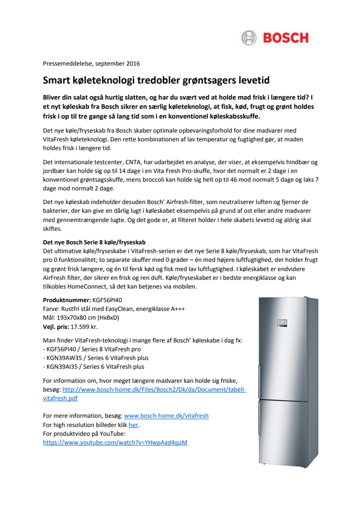 For mere information, besøg: www.bosch-home.dk/vitafresh