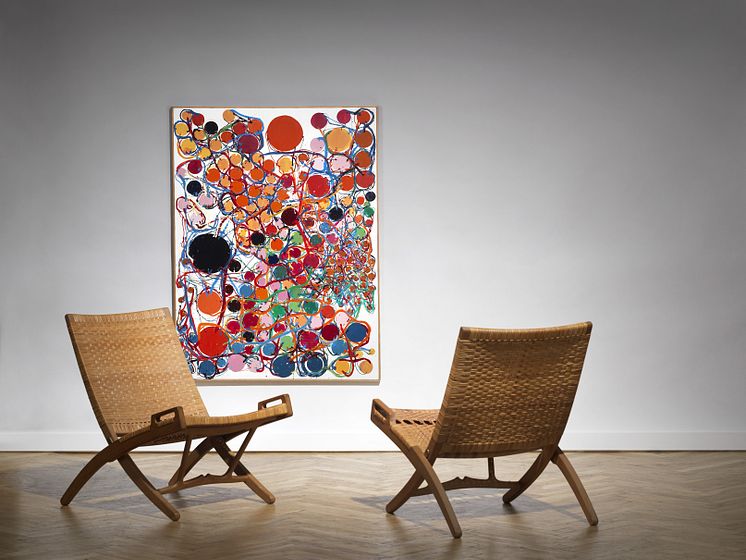 Atsuko Tanaka- Uden titel, 1966. Signeret. Lakfarve på lærred. 130 x 97 cm