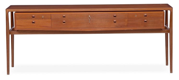 Helge Vestergaard Jensen- Fritstående skænk af mahogni. Front med seks skuffer. – stor.jpeg