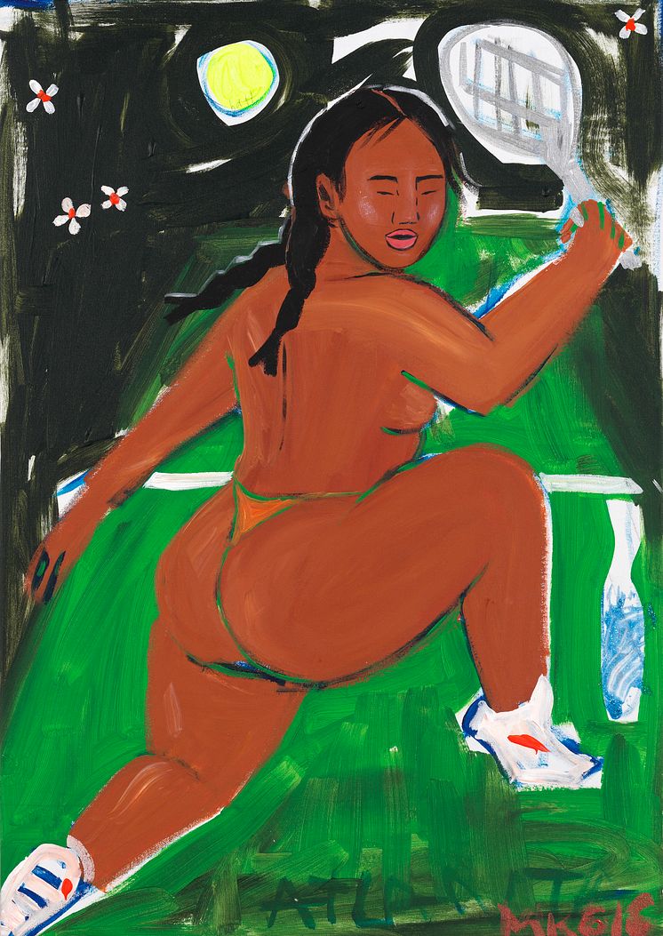 Monica Kim Garza- Tennisspiller. Sign. MKG 16. Akryl på lærred. 79 x 55