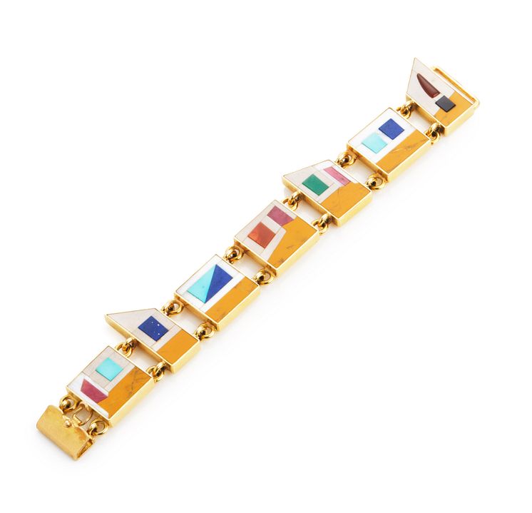 Ole Bent Petersen- Unika smykkesæt af 18 kt. guld bestående af armbånd og ring hver prydet med stenmosaik....jpeg