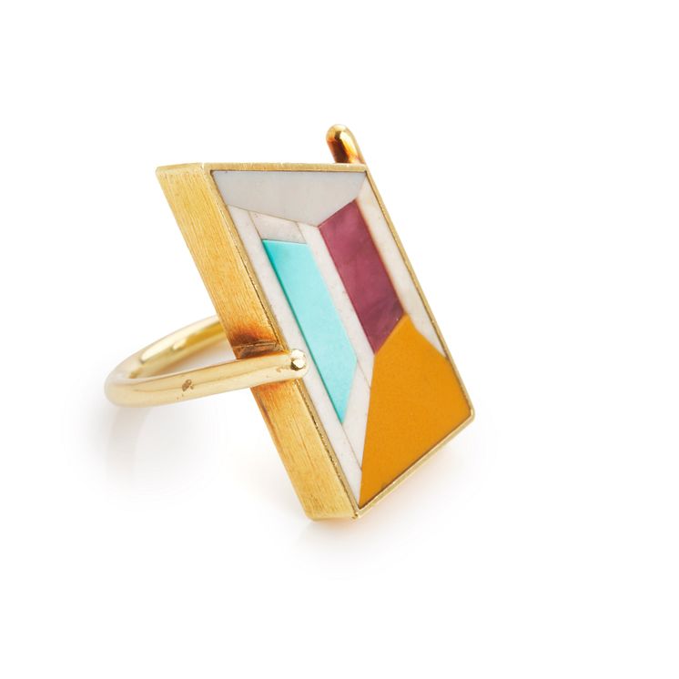 Ole Bent Petersen- Unika smykkesæt af 18 kt. guld bestående af armbånd og ring hver prydet med stenmosaik..jpeg