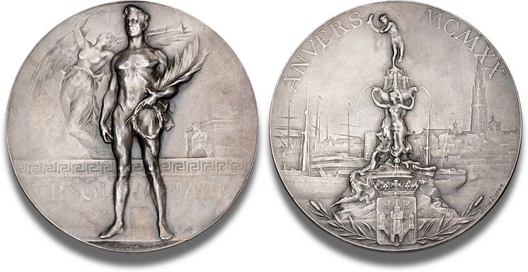 Sølvmedalje fra OL i Antwerpen. Vurdering- 25.000-30.000 DKK