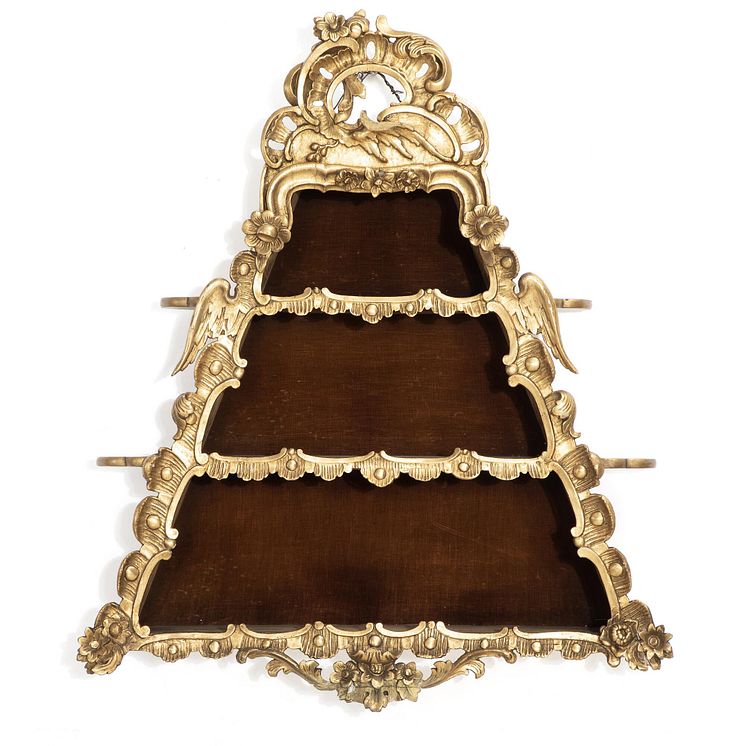 Stor Amagerhylde af forgyldt træ. Danmark. Rokokostil, ca. 1870
