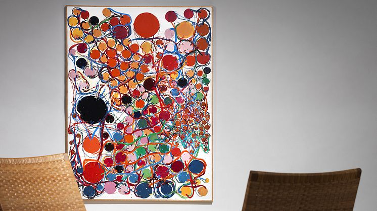 Det udbudte værk er en abstrakt komposition opbygget af farvede cirkler og myriader af forbindende linjer, der lader os som beskuere gå på opdagelse og danne vores egne oplevelser i værket.