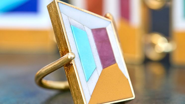 ”Her er tale om et unikasmykkesæt, hvor hvert enkelt element er nøje gennemtænkt ned til mindste detalje. Hver overflade er et lille kunstværk i sig selv, hvor materialevalg, grafiske detaljer, farver og perspektiv går op i en højere enhed. Det har en retrofeel over sig og er samtidig supermoderne,” fortæller Daniel Foldschack