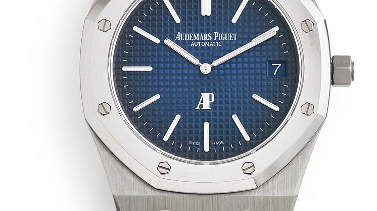 Det ene ur er et sjældent Royal Oak, som Genta, inspireret af en gammeldags dykkerhjelm, oprindeligt designede på en enkelt nat i 1972 for Audemars Piguet. Det ottesidet ur står i dag som indbegrebet af et moderne sportsur, og det udbudte eksemplar er exceptionelt sjældent og kun produceret i 250 eksemplarer. Det adskiller sig fra de mere almindelige varianter ved at være udført i de to modsatvejende materialer, platin og titanium, mens det er udstyret med en røgblå urskive. Det er vurderet til 600.000-800.000 kr.