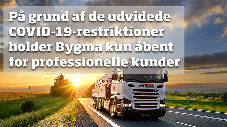 De udvidede COVID-19-restriktioner der trådte i kraft den 25. december er forlænget til den 17. januar 2021. Restriktionerne omfatter ikke Bygmas salg til professionelle og erhvervsdrivende inden for bygge- og anlægssektoren.