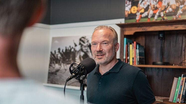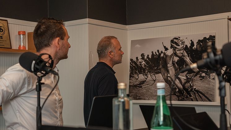 Billede 4: På billedet ses podcastvært Adam Møller Gomaa og den tidligere cykelrytter Lars Michaelsen. Fotokredit: Marcus Califano