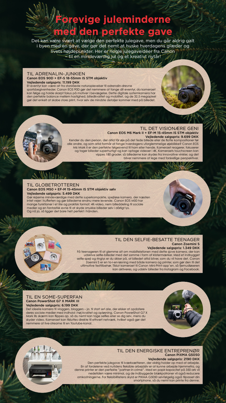 Det kan være svært at vælge den perfekte julegave, men du går aldrig galt i byen med en gave, der gør det nemt at huske hverdagens glæder og livets højdepunkter. Her er nogle julegaveidéer fra Canon – til en mindeværdig jul og et kreativt nytår!