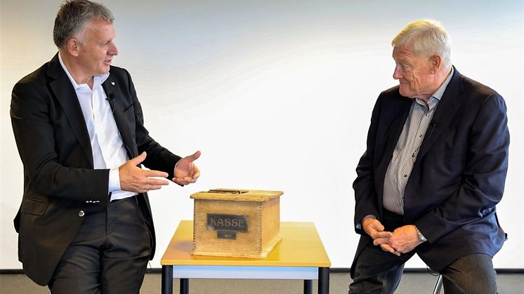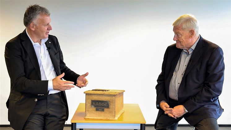 Canon Danmarks Administrerende Direktør, Kim Nielsen, ser tilbage sammen med Lars Bruhn, barnebarn af grundlæggeren Christian Bruhn.