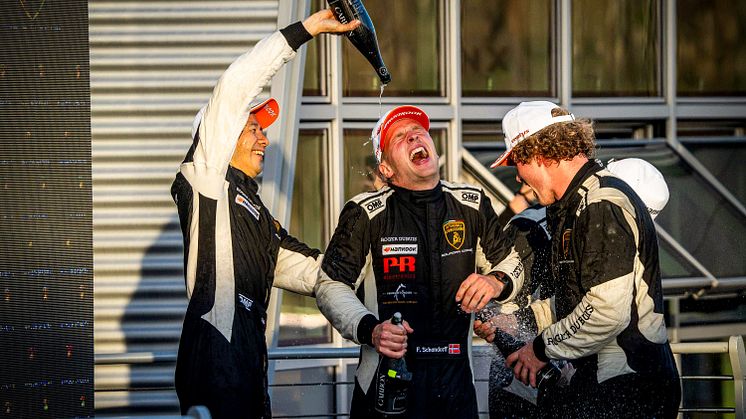 – Det var lige dét, vi drømte om! En motordefekt sendte os ud af kampen om Pro/Am-mesterskabet i årets næstsidste afdeling, så vi satte i stedet alt ind for at sikre os VM-titlen. Vi vidste, at vi havde farten til at kæmpe med, og en pole position til det ene løb gjorde os kun endnu mere optimistiske. Men man ved aldrig, hvad der kan ske i dén her serie. Konkurrencen er benhård, og man er oppe imod nogle enormt dygtige kørere og teams. Derfor er vi kun endnu mere stolte over at vinde begge løb og dermed sætte en tyk streg under vores performance. Kæmpe tak til min teamkammerat, Alex (Au, red.), og til hele holdet bag Target Racing, lyder det fra Frederik Schandorff.