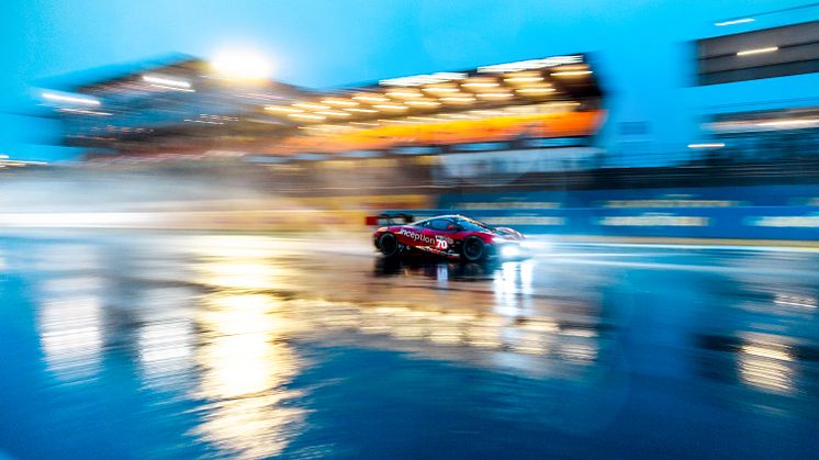– Det var bare vildt ærgerligt. Brendan (Iribe, red.) ramte uheldigvis en barriere, da han fortsatte ligeud i afkørselszonen i en af chikanerne på Mulsanne, og det beskadigede bilens kølesystem. Der var ikke andet for end at få bilen i garagen i en fart. Det skete heldigvis under en FCY (full course yellow, red.), men vi mistede alligevel nogle omgange, som det aldrig lykkedes os at få igen, lyder det fra Frederik Schandorff.