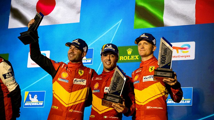 Stor præstation af den danske Ferrari-fabrikskører, som sammen med teamkammeraterne Antonio Fuoco og Miguel Molina sluttede på VM-podiet i debutløbet med den nye Ferrari 499P.