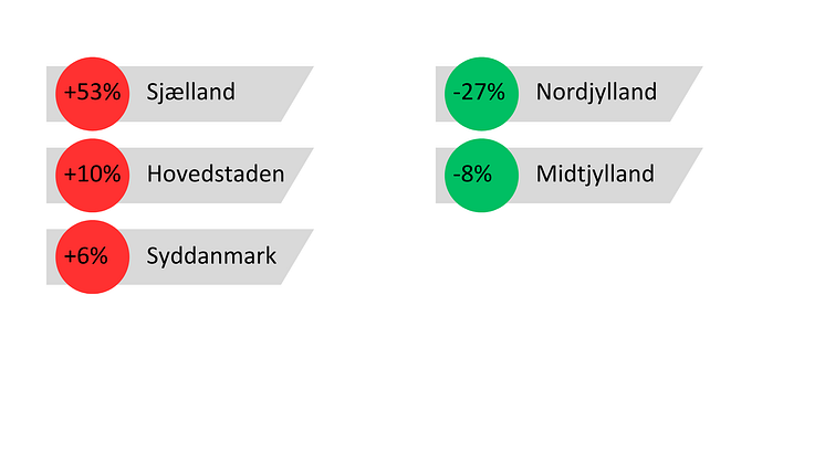 I Hovedstaden steg antallet af konkurser med 10% i samme periode, mens Midtjylland oplevede en nedgang på 8%. Overraskende var der en markant nedgang i Nordjylland på 27%. Sjælland viste derimod en dramatisk stigning på 53%, mens Syddanmark registrerede en mere beskeden stigning på 6%.