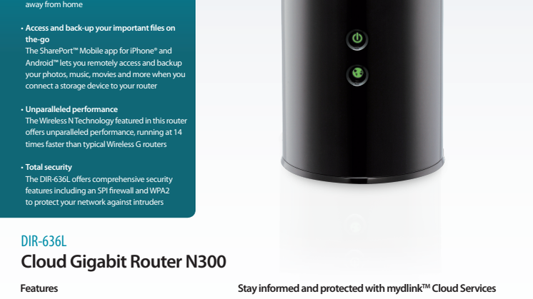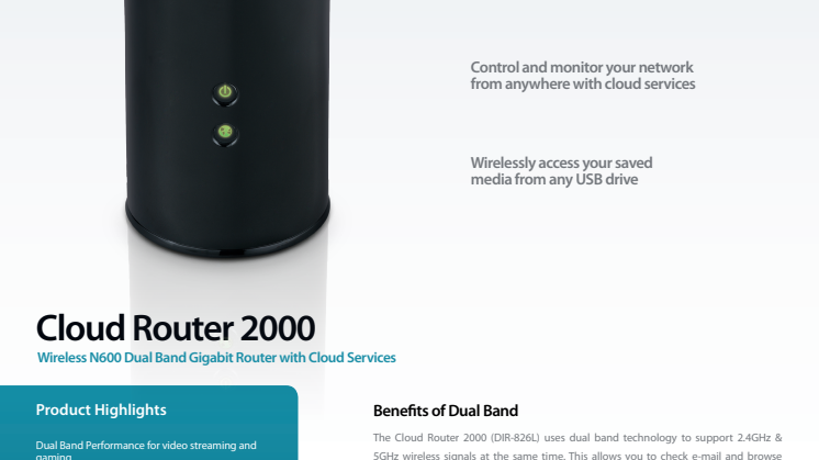D-Link lancerer to nye trådløse routere, som bygger på cloud teknologien. De to routere kan installeres og fjernstyres via iPhone, iPad eller en Android-enhed. ”Cloud-routerne" understøtter trådløs hastighed op til henholdsvis 300 Mbps (DIR-636L) og 600 Mbps (DIR-826L). Med routerne følger tjenesten mydlink cloud services, som gør installationen og administrationen helt enkel, samt en SharePort-app til deling af filer på tilsluttede USB-enheder. Begge dele er helt gratis.