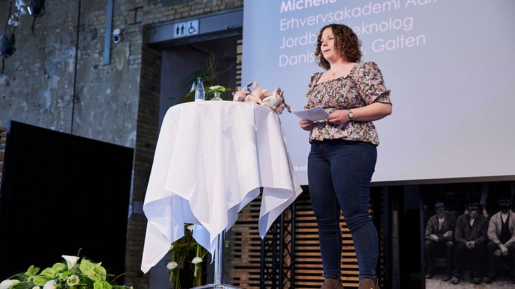 • Jordbrugsteknologstuderende Michelle Nielsen på scenen til landsfinalen