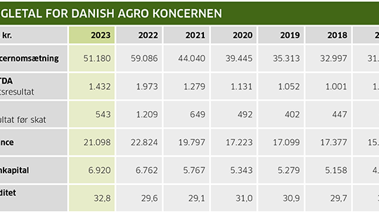 En række udefrakommende faktorer sætter spor i Danish Agros regnskab for 2023. I et udfordrende marked er det dog lykkedes koncernen at realisere den næsthøjeste driftsindtjening nogensinde.