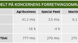 I forretningsområdet Agribusiness blev der i 2023 opnået en omsætning på 41,1 mia. kr. hvilket svarer til en tilbagegang på 16 %.