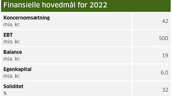 Det er, ifølge koncernchef Henning Haahr, Danish Agro koncernens mål at realisere følgende finansielle hovedmål i 2022: