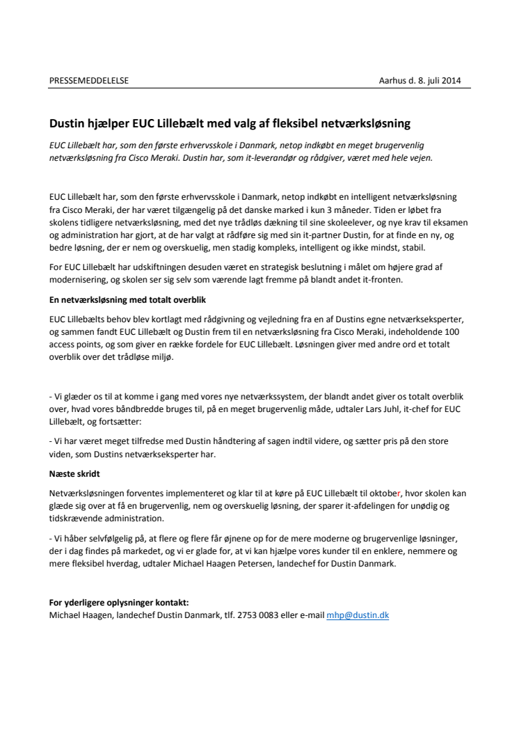 EUC Lillebælt har, som den første erhvervsskole i Danmark, netop indkøbt en meget brugervenlig netværksløsning fra Cisco Meraki. Dustin har, som it-leverandør og rådgiver, været med hele vejen.