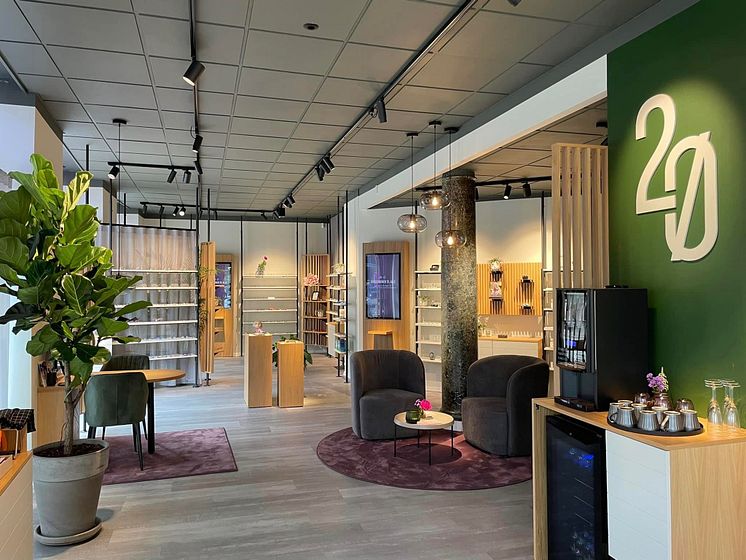 2Ø har skabt et koncept, hvor kunderne mødes af en loungestemning med sofaer, vin- og kaffebar. Den tilgang vinder frem i tiden, forklarer forbrugerekspert. Foto: 2Ø.