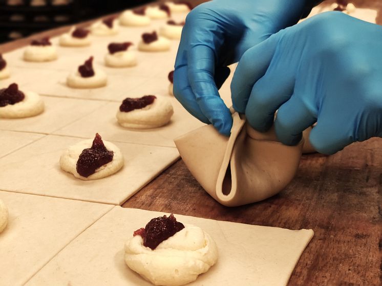 For at undgå, at fyldet flyder ud, når fastelavnsbollerne bages, er det alfa og omega at være omhyggelig med lukningen. Foto: PR.