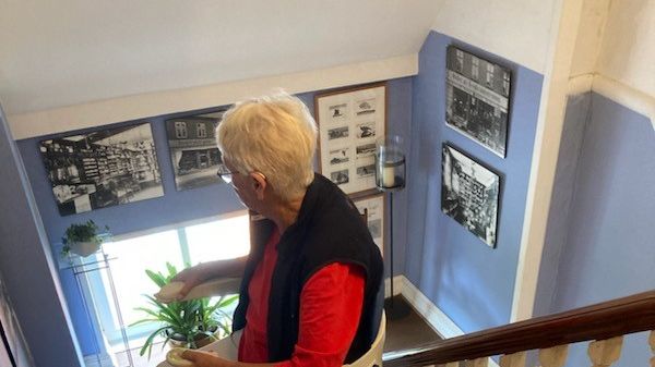 I 35 år har Søren og Karen Madsen boet i den gamle bankbygning på gågaden i Odder. Der er 42 trin op ad trappen, og han og hustruen Karen traver dagligt op og ned for at få motionen, men indkøbsposerne lader de stå på den stolelift, de for nyligt har fået installeret for at sikre sig at kunne blive boende på øverste etage i deres næsten 150 kvadratmeter store lejlighed resten af deres dage.