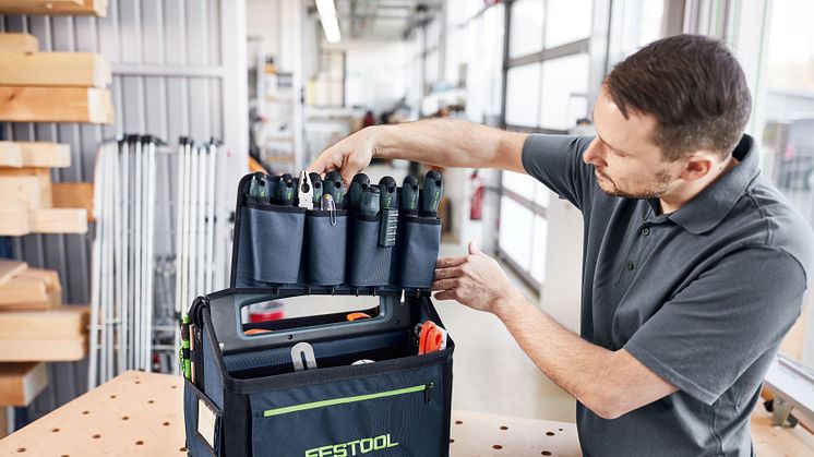 – Vores kunder efterspørger nytænkende og praktiske opbevaringsmuligheder, og det agerer vi efter. Den nye toolbag kan tilpasses enhver opgave med de mange ind- og udvendige lommer, hvor grejet kan placeres individuelt for at opnå den bedste organisering, siger Paw Mikkelsen, tømrer og produktspecialist hos Festool.