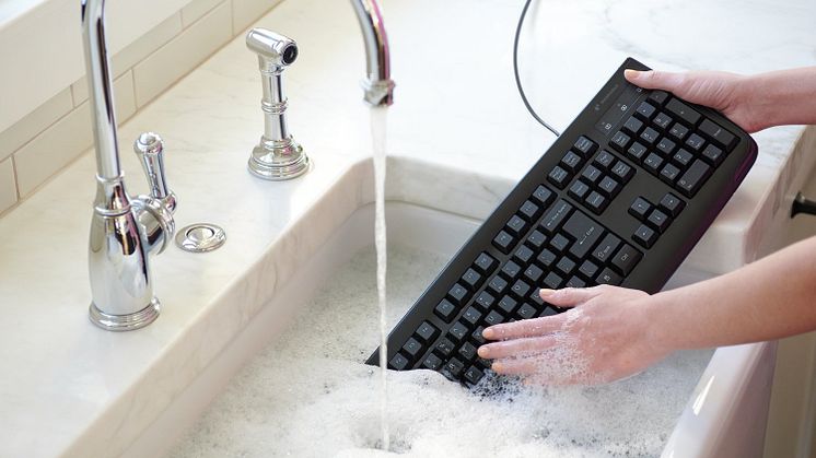 Tastatur og mus er en af de fem mest udsatte områder for krydskontaminering af computerprodukter og tilbehør, og det betyder, at det er vigtigt, at de rengøres regelmæssigt. Det vaskbare design modstår snavs og gør rengøringen enkel. Mus og tastatur tåler trygt at blive sænket ned i vand eller hyppig brug af rensespray.