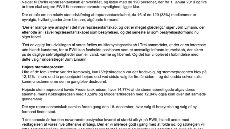 Valget til EWIIs repræsentantskab er overstået, og listen med de 120 personer, der fra 1. januar 2019 og fire år frem skal udgøre EWII Koncernens øverste myndighed, ligger klar.