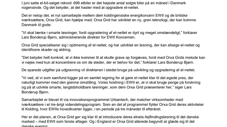 Samarbejdet betyder, at Orxa Grid i løbet af efteråret flytter til Kolding i en periode på tre måneder for at arbejde fra EWIIs hovedkvarter, og herfra udvikle deres produkt med henblik på det danske marked.