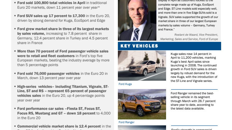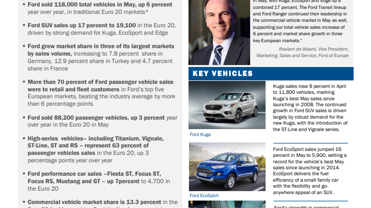 Ford of Europe Sales Up 3.7% in First Half; SUV and CV Sales Continue to Grow in June