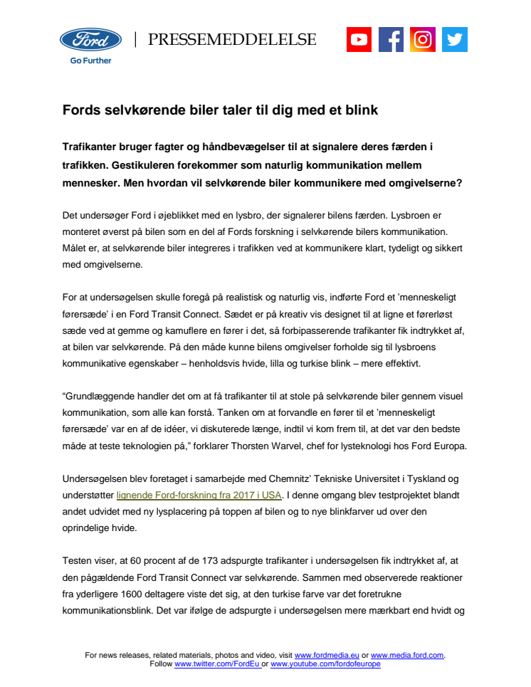 Trafikanter bruger fagter og håndbevægelser til at signalere deres færden i trafikken. Gestikuleren forekommer som naturlig kommunikation mellem mennesker. Men hvordan vil selvkørende biler kommunikere med omgivelserne?