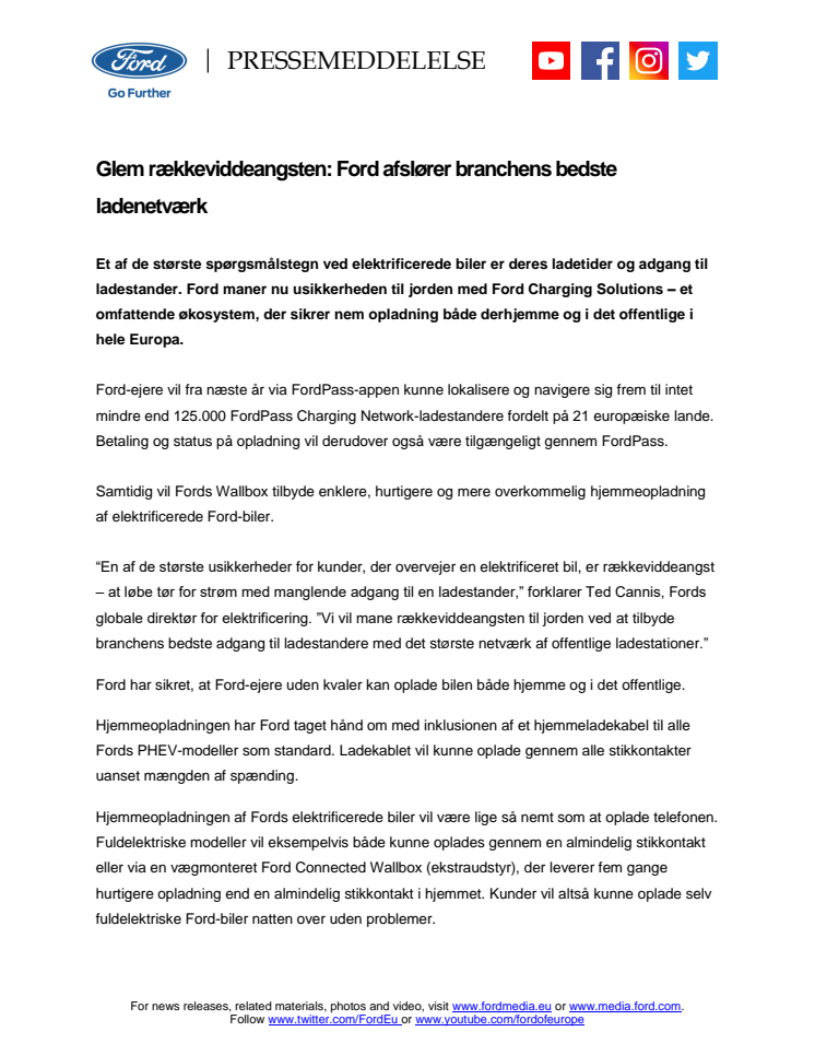 Glem rækkeviddeangsten: Ford afslører branchens bedste ladenetværk