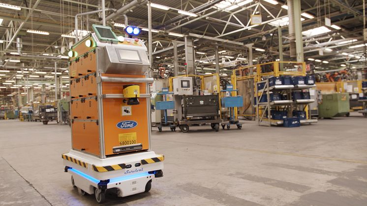 Ford tester en selvkørende robot på samlefabrikken i Valencia, Spanien. Robotten bruger samme teknologi som Fords kommende selvkørende biler.