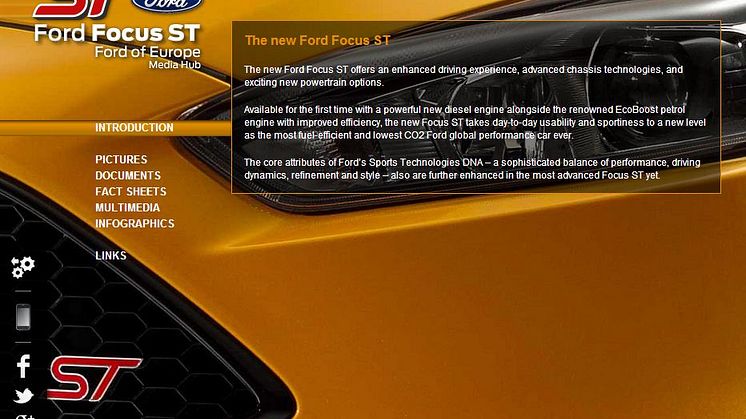 Find fotos, engelske presseinformationer samt tech specs på ny Ford Focus ST her: http://focusst.fordpresskits.com/enhanced.htm