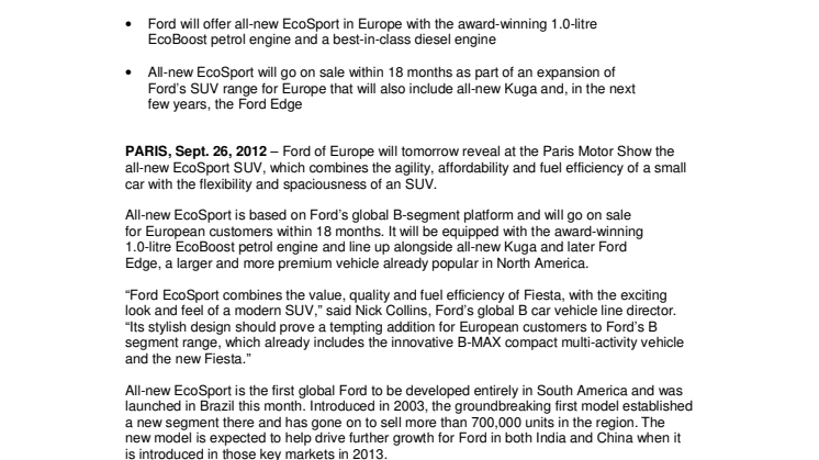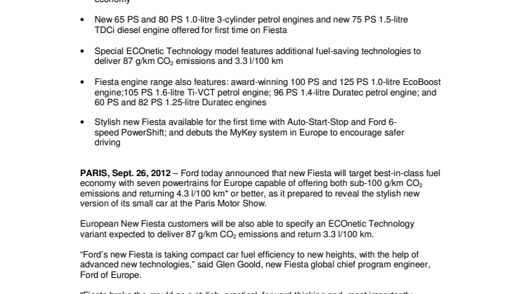 Alt materiale vedrørende Fords nyheder på Paris Motor Show er tilgængelig på Fords online press kit via dette link; http://paris2012.fordmedia.eu/