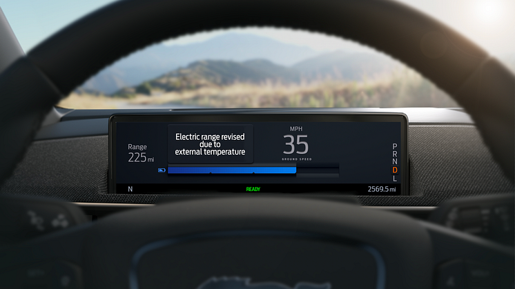Crowdsourcet data fra andre datatilkoblede Ford-elbiler kan også præcisere rækkevidden yderligere. Mustang Mach-E kan nemlig registrere og lagre varierende køreforholds vidt forskellige strømforbrug, der medregner faktorer som fx fart, terræn og klima. En flåde af datatilkoblede Mustang Mach-E kan dermed danne et tværsnit af elbilernes forbrug til at optimere nøjagtigheden på hele flådens rækkeviddeestimater – selv på ruter og i køreforhold, som man ikke har begivet sig ud på før.